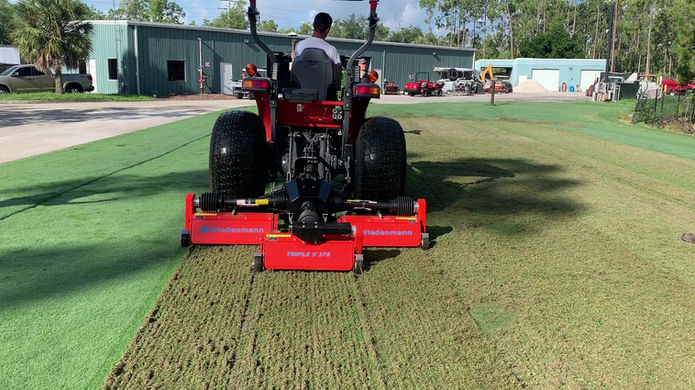 This tri-gang verticutter has 3 independent floating heads which enables it to follow the undulations of a fairway.